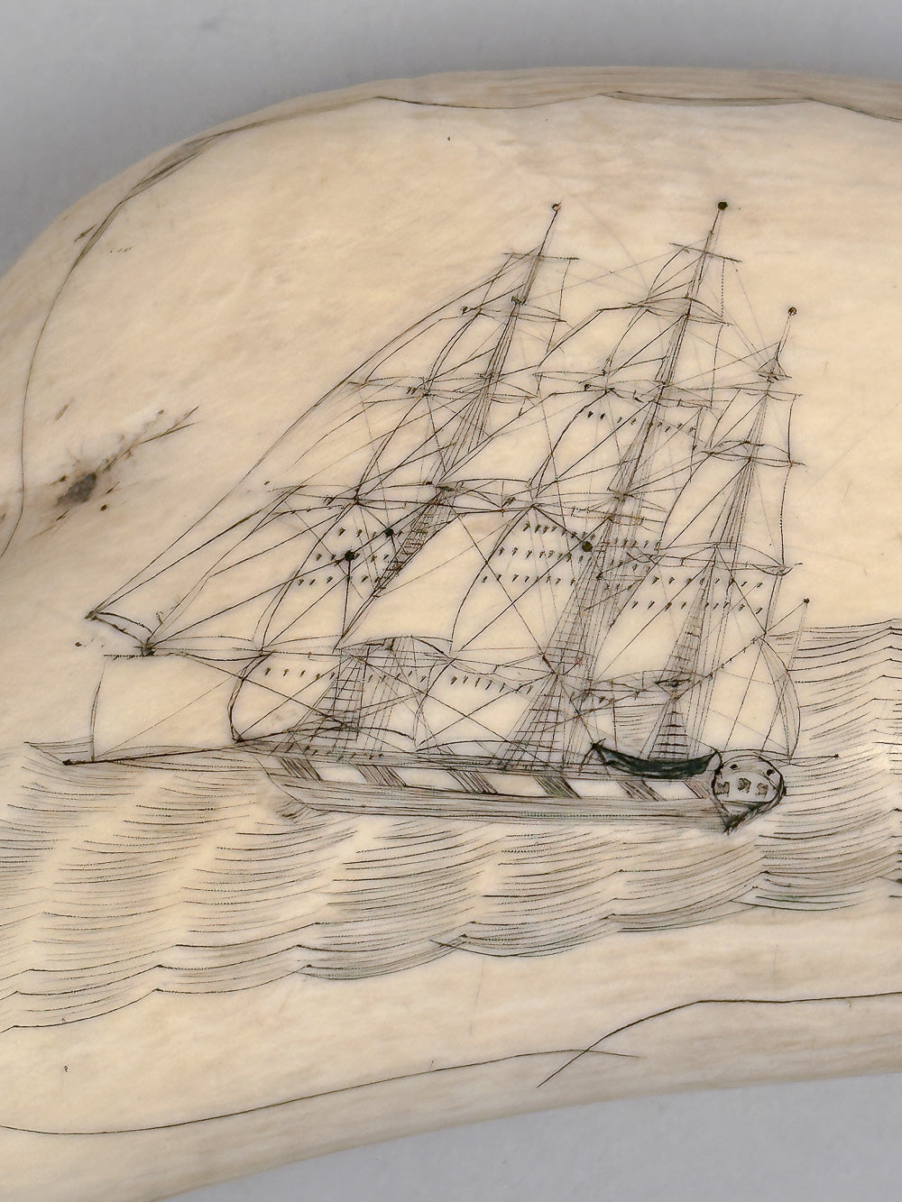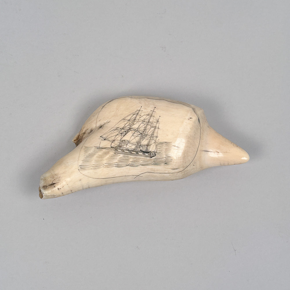 Antique Scrimshaw Whaleship on Irregular Tooth