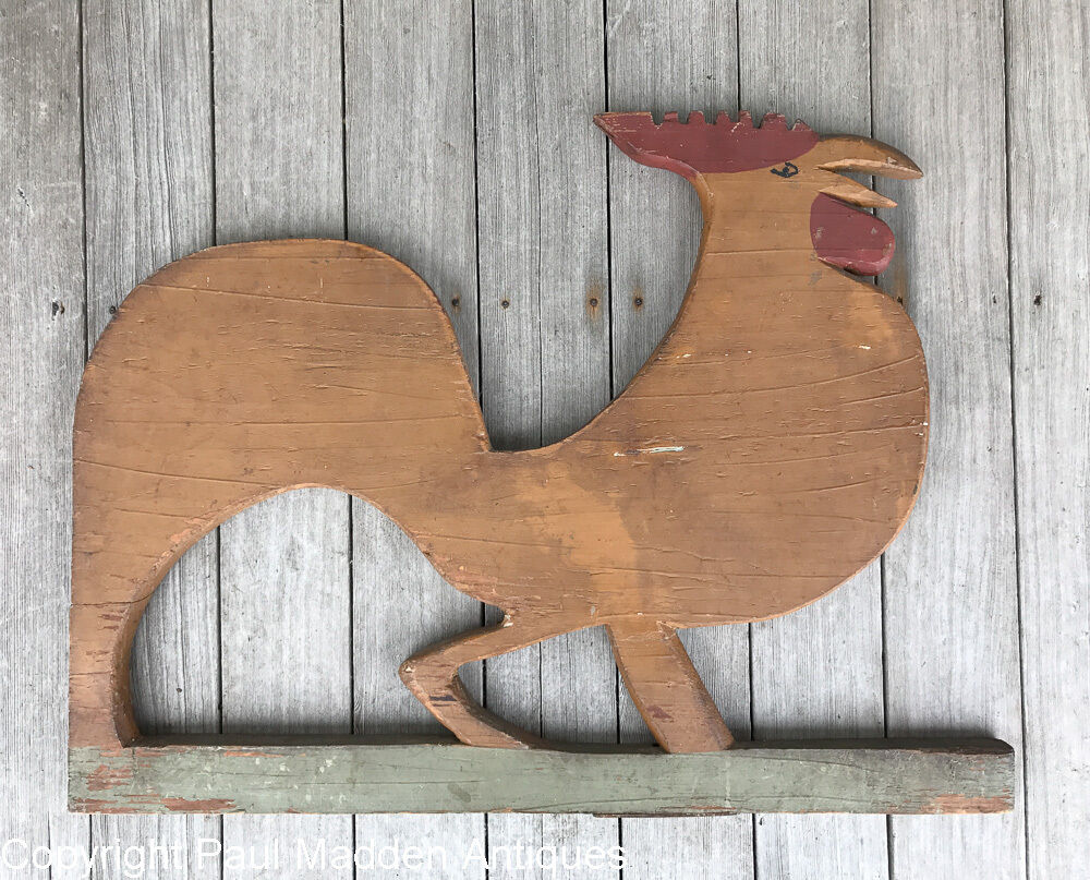Antique Folk Art Wooden Rooster Weathervane