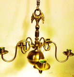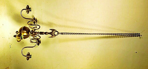 SKU:pmaCHANDELMiniature solid brass CHANDELIER with five removable arms and its original brass hanging chain. Dutch origin circa 1930's. Excellent condition, Size 7 inches long and 8 inches wide overall.